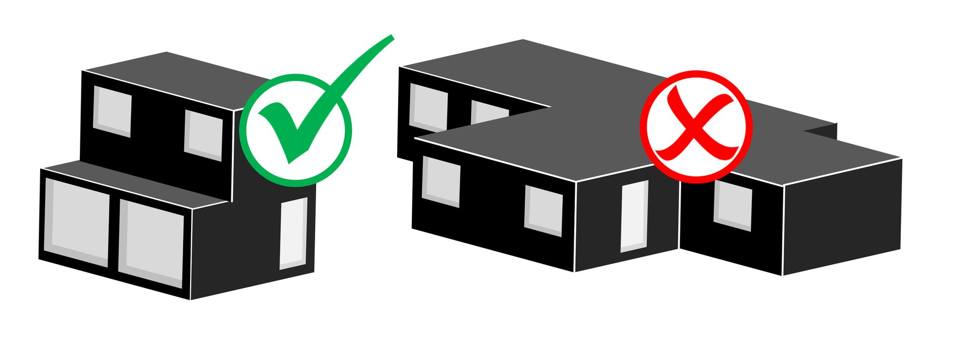 Le meilleur moyen de limiter les pertes par transmission thermique est de limiter les surfaces en contact avec l'air extérieur en optimisant la compacité du bâtiment. On utilise, pour cela, un ratio de compacité.