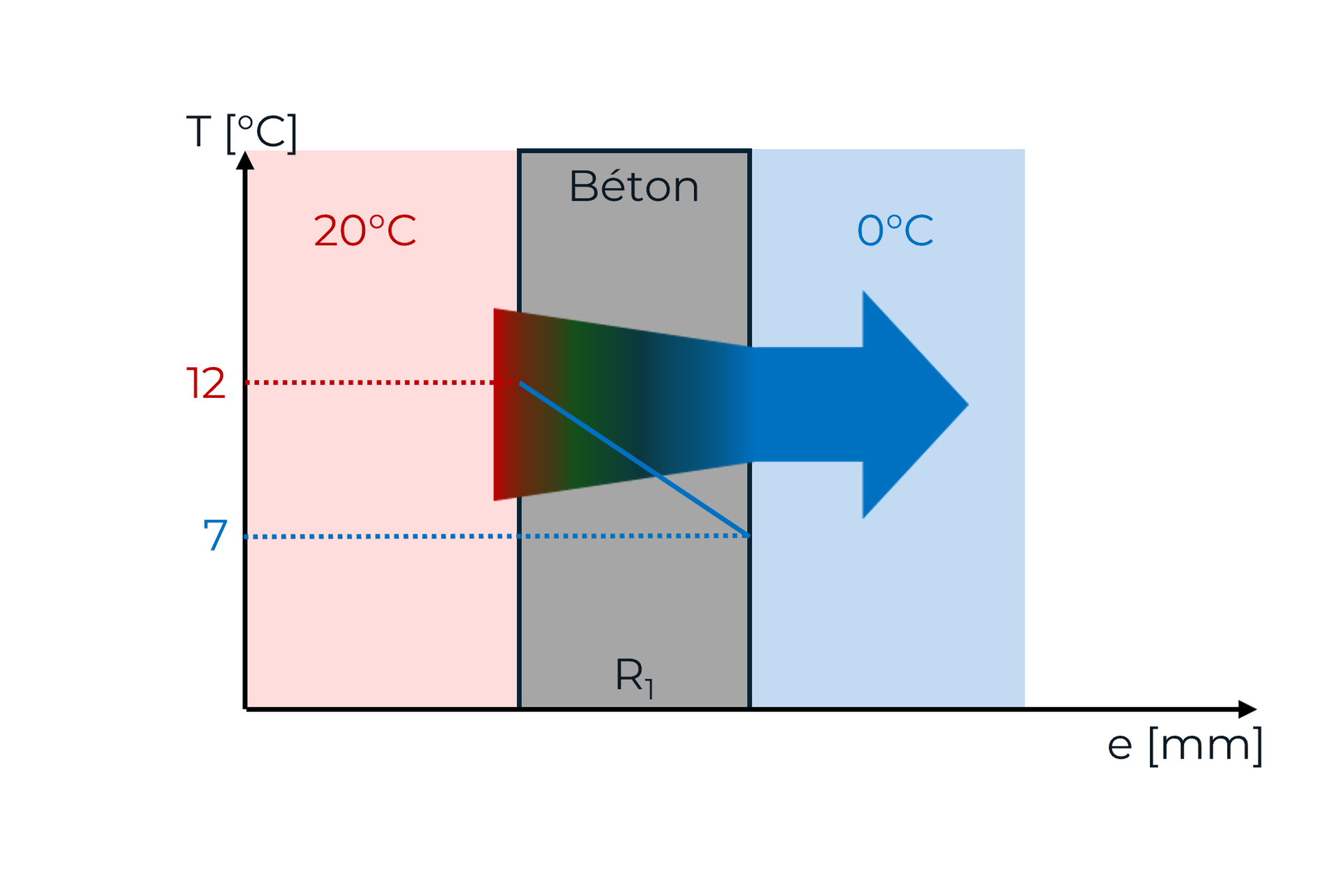 Le béton a une faible résistance, il transmet facilement la chaleur. Sa paroi intérieure est froide et sa paroi extérieure est chaude, signifiant que la chaleur sort.